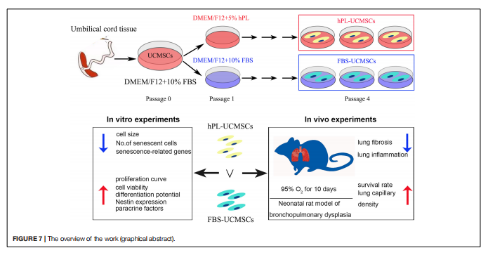 該研究證明了hPL作為UC-MSCs培養(yǎng)的補充添加物所具有的功能作用,表明其重要的臨床使用價值。這將有助于促進hPL在未來UCMSCs規(guī)模化培養(yǎng)中的廣泛應用,并為臨床BPD患兒的治療應用提供更多幫助。