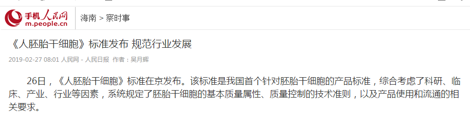 2019年2月26日,《人胚胎干細(xì)胞》標(biāo)準(zhǔn)在京發(fā)布。該標(biāo)準(zhǔn)是我國首個針對胚胎干細(xì)胞的產(chǎn)品標(biāo)準(zhǔn),綜合考慮了科研、臨床、產(chǎn)業(yè)、行業(yè)等因素,系統(tǒng)規(guī)定了胚胎干細(xì)胞的基本質(zhì)量屬性、質(zhì)量控制的技術(shù)準(zhǔn)則,以及產(chǎn)品使用和流通的相關(guān)要求。